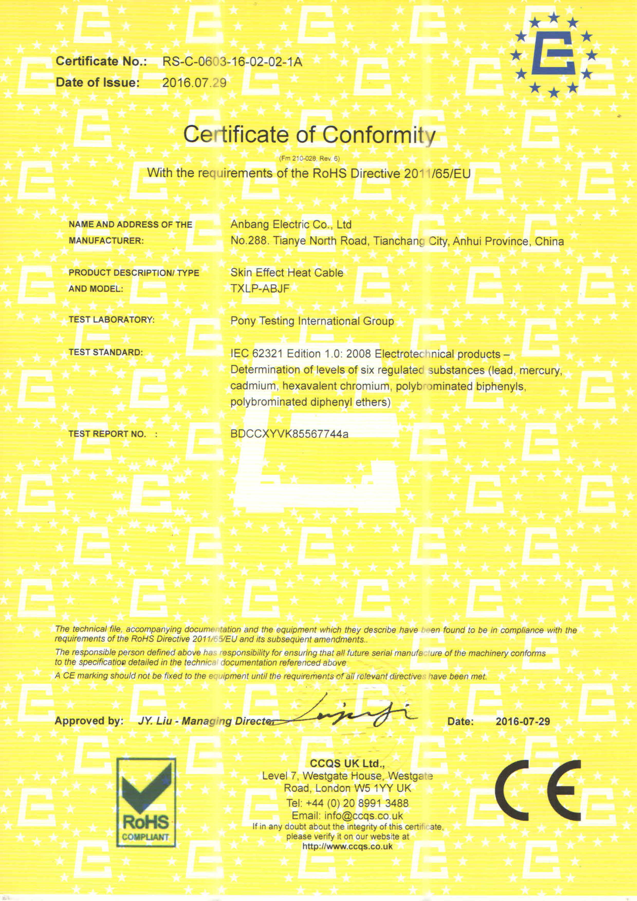 安邦電氣股份有限公司,總部位于北京市長安街,成立于2004年,注冊資金10088萬。安徽生產(chǎn)基地占地面積63000平方米,擁有66套各類生產(chǎn)線,其中進(jìn)口生產(chǎn)線6套。國家高新技術(shù)型企業(yè),滁州市市長質(zhì)量獎企業(yè),專精特新“小巨人”企業(yè),擁有國家知識產(chǎn)權(quán)局授權(quán)的45項(xiàng)專利,其中發(fā)明專利28項(xiàng) , 主筆《太陽能熱利用自限溫電熱帶安裝規(guī)范》行業(yè)標(biāo)準(zhǔn),參編《自限溫電伴熱帶》國家標(biāo)準(zhǔn)、《工業(yè)和商業(yè)用電阻式伴熱系統(tǒng)》國家標(biāo)準(zhǔn)、《太陽能熱利用自限溫電熱帶》行業(yè)標(biāo)準(zhǔn)、《爆炸性環(huán)境 電阻式伴熱器》國家標(biāo)準(zhǔn)等7項(xiàng)國家標(biāo)準(zhǔn)。企業(yè)通過UL認(rèn)證,國家強(qiáng)制性 CCC產(chǎn)品認(rèn)證,ISO9001質(zhì)量管理體系認(rèn)證,ISO14001環(huán)境管理體系認(rèn)證,ISO45001職業(yè)健康安全管理體系認(rèn)證,Q/SHS0001.1健康、安全與環(huán)境管理體系認(rèn)證,歐盟防爆ATEX認(rèn)證,歐盟CE認(rèn)證,RoHS認(rèn)證,俄羅斯海關(guān)聯(lián)盟認(rèn)證,國家防爆電氣CCC證書。產(chǎn)品系列:集膚伴熱系統(tǒng)、電伴熱系統(tǒng)、電加熱器、電地暖系統(tǒng)、集儀器儀表、電線電纜、高低壓配電柜(箱)、電纜橋架、閥門管件等等設(shè)計(jì)、制造、銷售。產(chǎn)品應(yīng)用于航天航空、軍工、石油、石化、天然氣、機(jī)場、化工、鋼鐵、隧道、消防、養(yǎng)殖、融雪化冰、室內(nèi)供暖、國家電網(wǎng)及眾多電廠等等國家重點(diǎn)工程。出口美國、英國、德國、俄羅斯、韓國、日本、哈薩克斯坦、烏克蘭、伊朗等眾多國家。